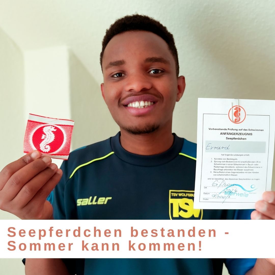 Juli 25 in Wolfsburg: Grenzen überwinden, auch im Wasser! Acht weitere Jugendliche mit Fluchterfahrung trotzen der Angst und holen sich ihr Schwimmabzeichen!