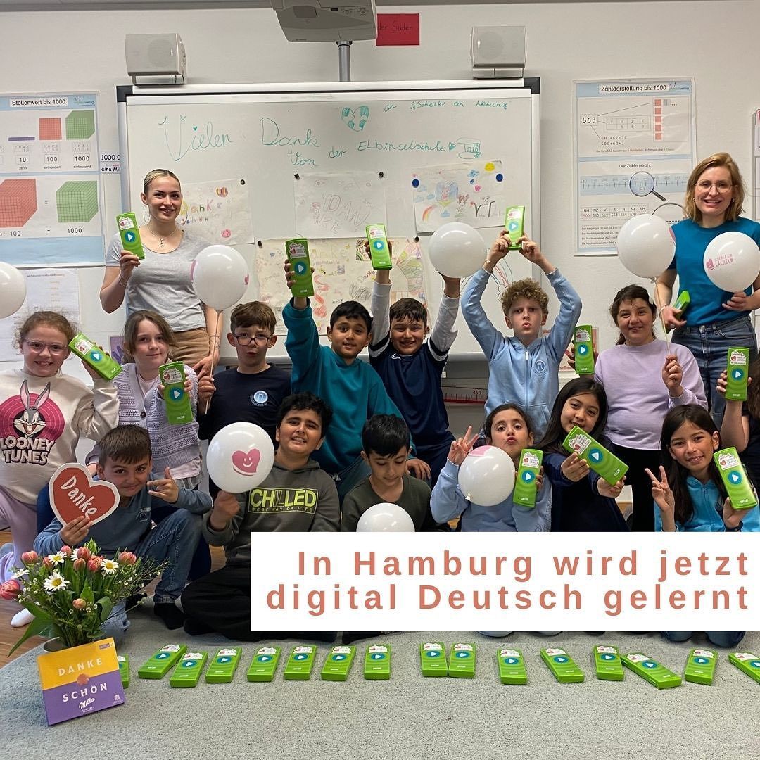 Ja 😍🎉...so geht es auch - Deutsch lernen kann Spaß machen! Das haben wir heute nach der Übergabe unserer digitalen Sprachlernstifte in der Hamburger Grundschule Buckhorn erleben dürfen. Die IVK-Kla…