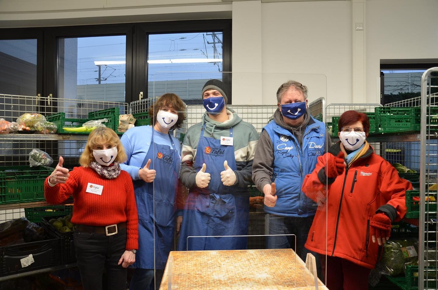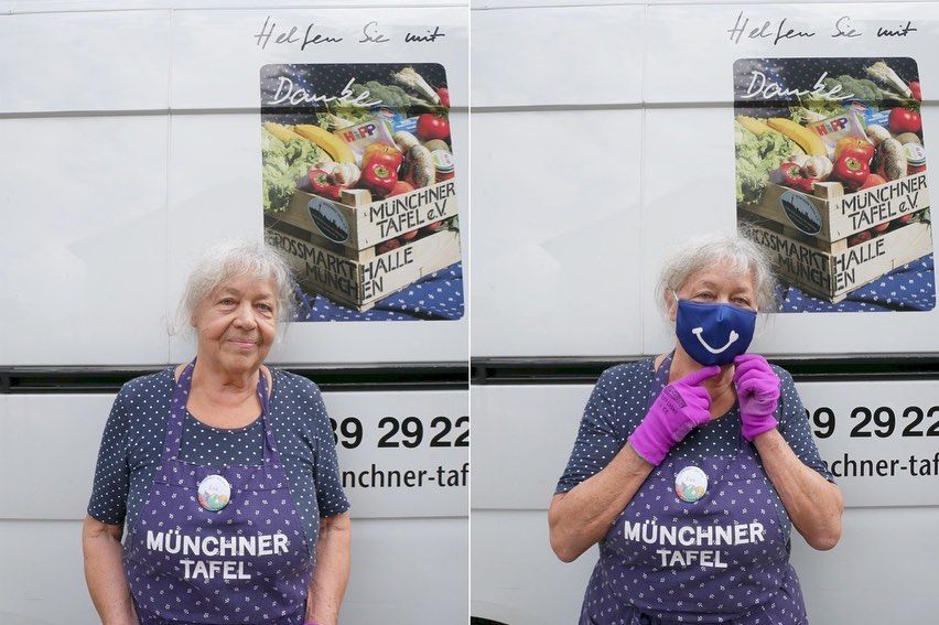 Nur wenige Tage nach der Bitte um Masken freuen sich die ersten ehrenamtlichen Helfer der Brucker Tafel über den dringend benötigten Mund-Nasen-Schutz mit dem Lächeln 🙂🤍💙 #schenkeeinlächelnbot…