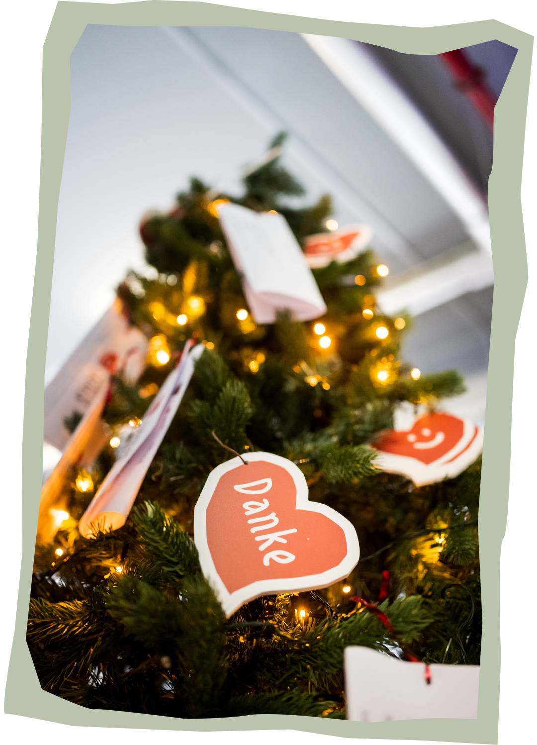 Wir arbeiten für die Wunschbaum-Aktion mit sozialen Einrichtungen wie z.B. Flüchtlingsunterkünften zusammen.