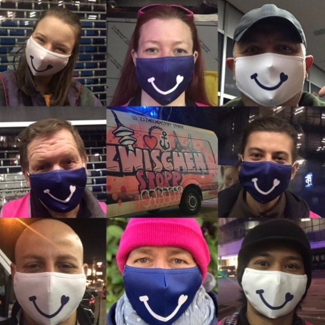 Die @zwischenstoppstrasse Obdachlosenhilfe aus Hamburg freut sich über unsere lächelnden Masken 😍🥰 Vielen Dank für all die großzügigen Spenden! #schenkeeinlaecheln #deutschlandlaechelt #schenkeeinl…