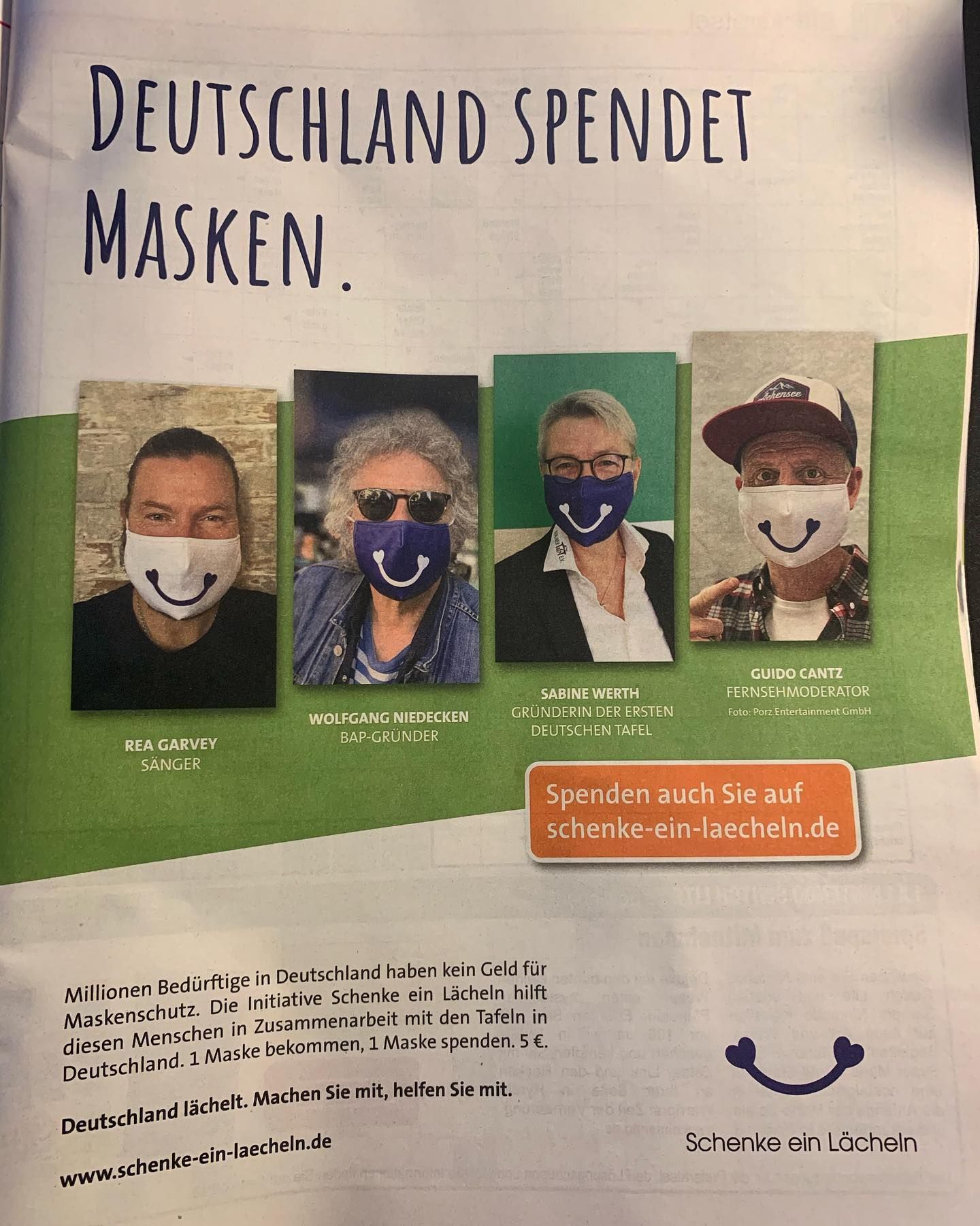 Unser neuer #schenkeeinlächelnbotschafter @guidocantz hilft mit, mehr als 1,7 Millionen Bedürftige in Deutschland zu unterstützen und eine Maske an sie und ihre ehrenamtlichen Helfer zu spenden! D…
