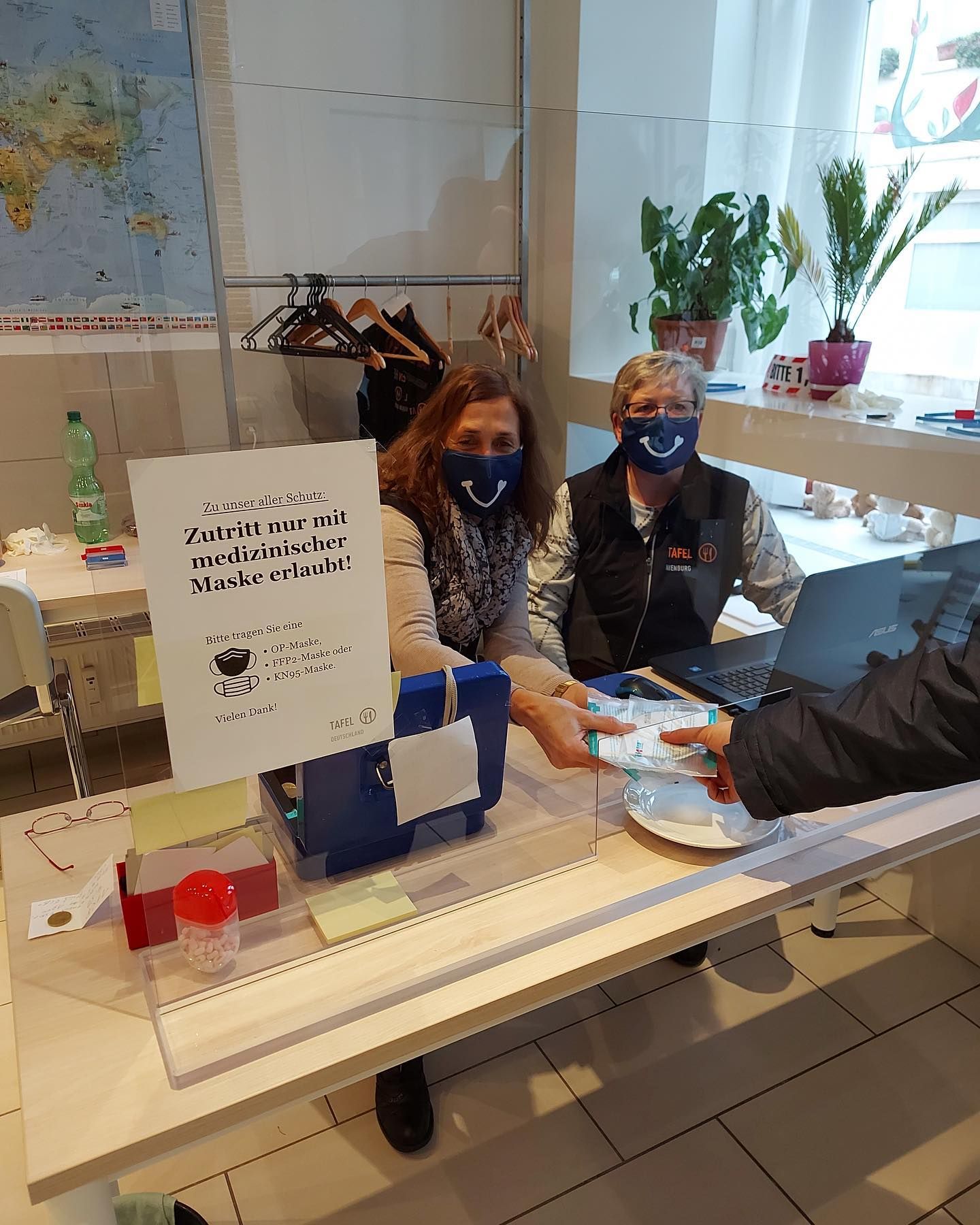 Die ehrenamtlichen Helfer der Tafel Nienburg freuen sich, in ihrer Registrierungsstelle nun auch FFP2 Masken an die Bedürftigen ausgeben zu können und ihnen so den Zutritt